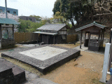 写真中央の石造りが正保絵図です。写真右奥から順に、待合所、トイレ、公衆電話です。