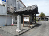 円満寺が買受て、現在地に移築した。その時に、柱の下を二尺五寸(約七十六センチ)切り取って山門にしたといわれている。昭和三十五年五月三十一日指定、掛川市教育委員会、とあります。
