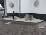島田掛川信用金庫前に在ります。手前右から順に、積小為大(せきしょういだい)石碑、浄財石碑(賽銭箱)、恵比寿石像。積小為大は二宮尊徳の言葉で、この掛川は彼とは深い関係が有るのです。