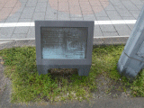 24)掛川城大手門跡ブロンズ製案内板:門の手前、左側歩道、徒歩35分、道路北奥