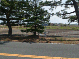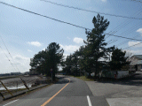 小橋を渡ると田園風景が広がります。また、その吹く風も強い(〜傾いた松並木)。松並木の左側には歩き易い様に、歩道が整備されています。
