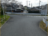 正面には一方通行(軽車両を除く)標識が立っています。7:00〜8:00、通学路に付、車両進入ご遠慮ください、の表示も有ります。
