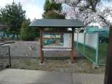 高札の右側には説明文が、左側には版画が置かれています。向いの右側歩道にはベンチが置かれており、休憩が出来る様に成っています。説明文には、
