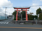 赤鳥居と呼ばれ親しまれているこの赤鳥居は、東海道分間延絵図(とうかいどうぶんけんのべえず)にもその姿が描かれ、天正十八年(一五九〇)に地頭の本間源三郎重泰が建立し、寛永十五年に北条氏重が現在の地へ