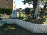 同広場の左側手前に、同立札と同看板が在ります。消えたのか?、立札には何の文字も有りません。また看板には、音符記号が散りばめられています。