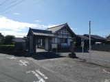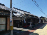 妻を漆喰で塗り込め、正面は上屋を黒漆喰真壁、下屋に格子を設けるなど、町家的な表構えを見せる、とあります。立札の下には新し目の、石製の東海道道標が建っています。