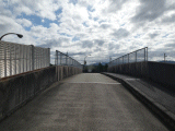 右折した後は、右側歩道を下ります。写真右側には関西本線が、写真左側には旧道が見えています。