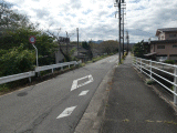 左から道路が合流します。引続き、右側歩道を歩きます。右手には、踏切道の残骸も窺えます。
