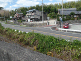 跨線橋から覗いています。旧道が県道565号線に突当る場所です。写真左端には、関西本線の線路も見えています。