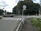 踏切奥には国道1号線と、突当左折地点が覗えます。