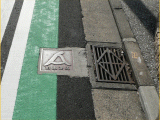 「人の字の下に一の字」がデザインされたプレートです。西区歴史街道を表します。