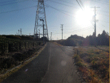 正面には鉄柱が見えています。旧道は左の幅の狭い方です。分岐後旧道はSの字を描きます。
