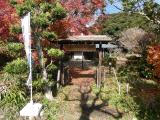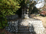 石段を上ると小社の中に、赤い帽子と前掛けを着けた地蔵が祀られています。簡素な造りです。