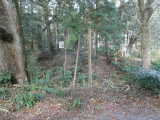 正面は掘で、右側は急な下り坂です。諏訪神社へ行くには、此処を左折します。