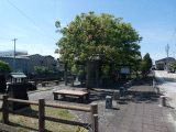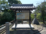 高札の左手前に石柱があり、正面は桑名、右側面は→四日市と彫られています。また、右奥には石灯籠が有ります。高札の左側には周辺図が、右側には説明文が記されています。表示内容は前回と同じですが、色が若干褪せていました。