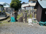 写真では見え難いですが、墓地の右奥の丸い石(鏡)の中に、確かに「梅花佛」と彫られています。(写真〜草木の左側)墓地の右手前には説明石板も建っていますが、草生していて読めません。