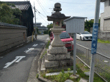 旧道の右手に同立札と常夜燈が建っています。立札の説明文には、常夜燈は神に捧げる灯である。神社の境内にあるときは献灯であろうが、町の中や街道で見る常夜燈は、それぞれの意味をもっている。桑名川口より伊勢までは、神宮への導光であろうと