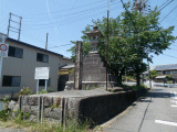 旧道側から、同説明板、道標(明治の里程標)、同常夜燈が建っています。鉄枠で補強された道標の正面には、従町屋川中央地桑名郡、右側面には距三重縣庁拾一里丗甼餘、左側面には距桑名郡役所丗三町餘、明治廿六〇二月、とあります。