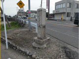 111)金属枠で補強された道標/左入地点:道路の叉、右手、道路北側