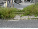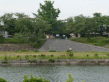 堤防の右側に、下に降りる階段が在ります。階段下の道は、先の二叉で分かれた道です。まあこの面倒なルートは、ガイドの気晴らし(だけ)です。