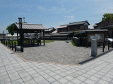 入口右側に旧東海道石碑が建っており、その後ろに朝日町史跡案内図高札、その右にここは東海道案内板が在ります。入口から続く遊歩道の左手に東屋、その先右側は自転車置場で、左手遊歩道出口付近には塚も有ります。