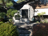 駐車場入口を左折すると、丁子屋の歩道が有ります。句碑の裏側には文章が彫られており、その右側には説明用立札が有ります。
