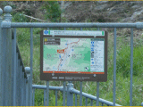 46)東海道自然歩道バイパスコース案内板/道の駅:蔦橋を渡ると、橋の右奥、道路南西