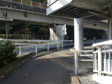 53)右折地点/宇津ノ谷入口:歩道橋を降りると、右手、徒歩159分、道路西側
