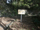 旧道から出る分には間違い様が有りませんが、入る際には間違えるかも知れません。看板の先には旧道の坂と手摺も覗えます。