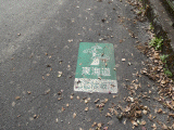 108)東海道ここは坂下ペイント道標:合流地点からすぐ、右手、徒歩227分、道路北側