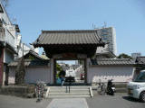 参道左手前に聖徳太子堂建設碑、山門の左手には字が読めない石碑。本堂はモダンなコンクリート造りです。