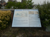 案内板は熱田湊と東浜御殿について解説されています。左側に熱田湊について、右側に東浜御殿について、とあります。各々上部には絵が飾られており、前者のそれは熱田湊之図内藤東甫18世紀後半名古屋市蓬左文庫所蔵、