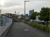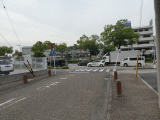 歩道橋を使用して、国道の北側歩道に出ます。歩道橋を降りた後は、北側歩道を東に戻ります。