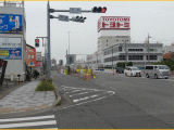 写真は歩道橋の上から、宮宿方面(西側)を撮っています。交差点の先には、左入道路も窺えます。