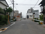 旧道は写真左奥の道です。写真左に写る横断歩道を使用して、交差点の左奥に出ます。