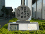 2)江戸開城西郷南洲勝海舟会見之地記念碑:右曲の先、左手、徒歩124分、道路東側