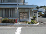 農協の庭先に4枚の木板が並んで配置されています。
