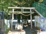 昔は川には板橋が渡されていましたが、写真の通り現在は撤去されている様です。板橋の先は上り階段で、左奥に拝殿と本殿が有りました。
