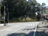 交差点右手前の道は、県道を横断する歩道橋に続いています。ここを右折して歩道橋に向かいます。