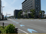 20)県道横断、右折地点/通横町(とおりよこちょう)交差点:外堀跡を過ぎ、右手、徒歩26分、道路西側