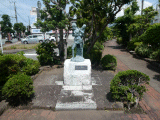 2)母子像(いつくしみ):橋を渡ると、交差点右手の緑地帯の中に、右手、道路北側