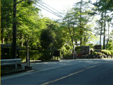 観音橋を過ぎると観音坂です。旧道右手からは奥湯本温泉街に通じる二本の坂が下っています。坂の右側には「観音坂登二町許(ばかり)」道標と観音坂立札が建っています。