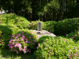 ツツジの中に小さな石碑が有ります。橋を渡ると、県道は逆Sの字を描いて高度を取ります。