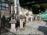 左から国道1号線が合流します。道路の叉には何故か?、沢山の石灯籠が置かれていました。