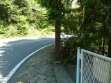 県道へは階段で出ます。出口の目の前右手には、箱根旧街道のポストが建っています。また県道の左側には歩道が付いており、此処からは左側を歩きます。
