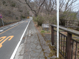 出口右手に、↑×、→歩道、湯本方面道標が在ります。県道を下る歩道はこの先で途切れています。