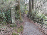156)史跡箱根旧街道石碑:道標の先、杉並木歩道橋の手前、左手、徒歩575分、道路東側