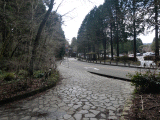 右から国道が合流します。両側歩道は歩きずらい石畳です。(苦笑)