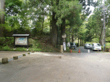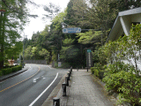 正面に←箱根関所、→恩賜箱根公園駐車場Pポストが在ります。関所の前に箱根関所資料館を見学する為、此処を右折します。