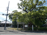 石鳥居の右手には大クスが有ります。樹齢は〜500年で、その大きさは遊行寺の大イチョウ並です。